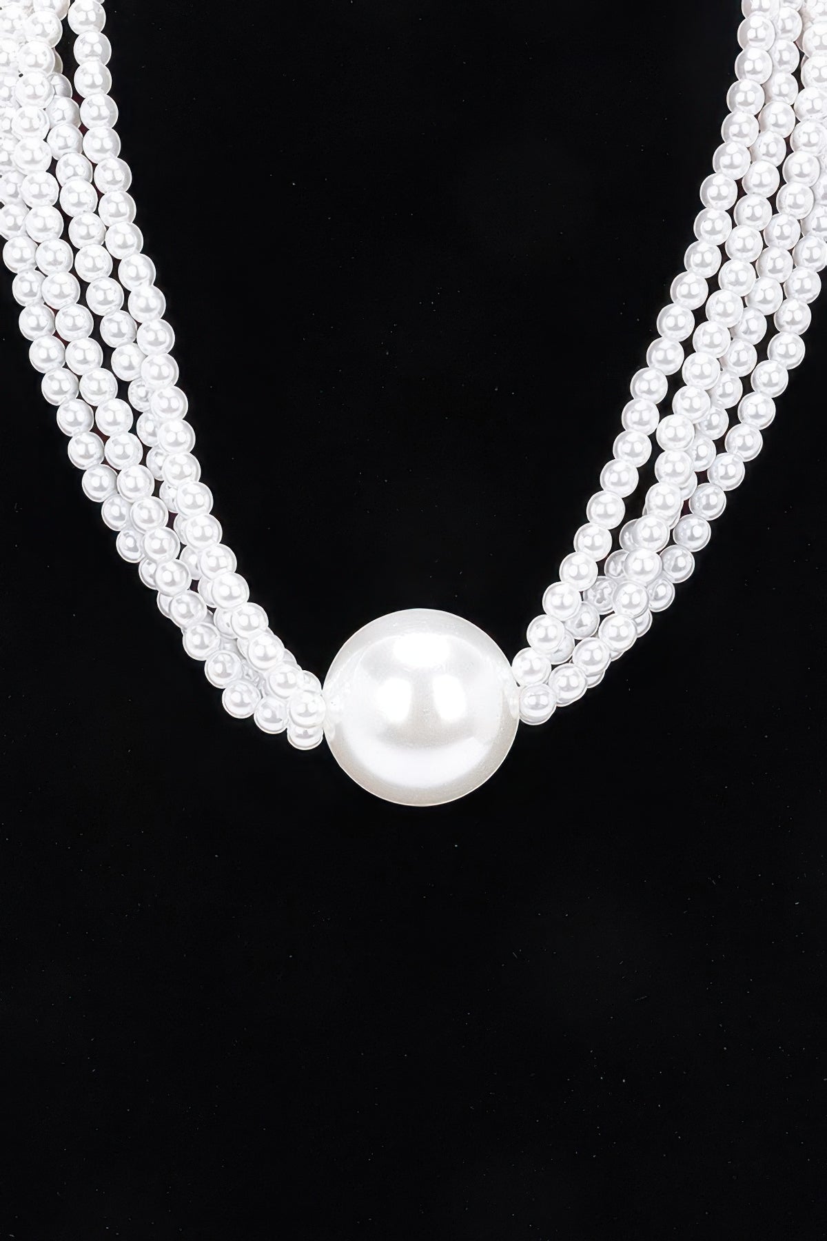 Elevate your ensemble with the Trinity Pearl Elegance, a stunning three-strand faux pearl necklace that embodies timeless sophistication. Designed with graceful layers of luminous white pearls, this piece adds a refined touch to any outfit. Measuring approximately 15.5" in length, it drapes beautifully for a polished, elegant look. Whether you're attending a special event or enhancing your everyday style, this necklace brings an effortless charm. Let the Trinity Pearl Elegance be your go-to accessory for a classic and radiant finish.