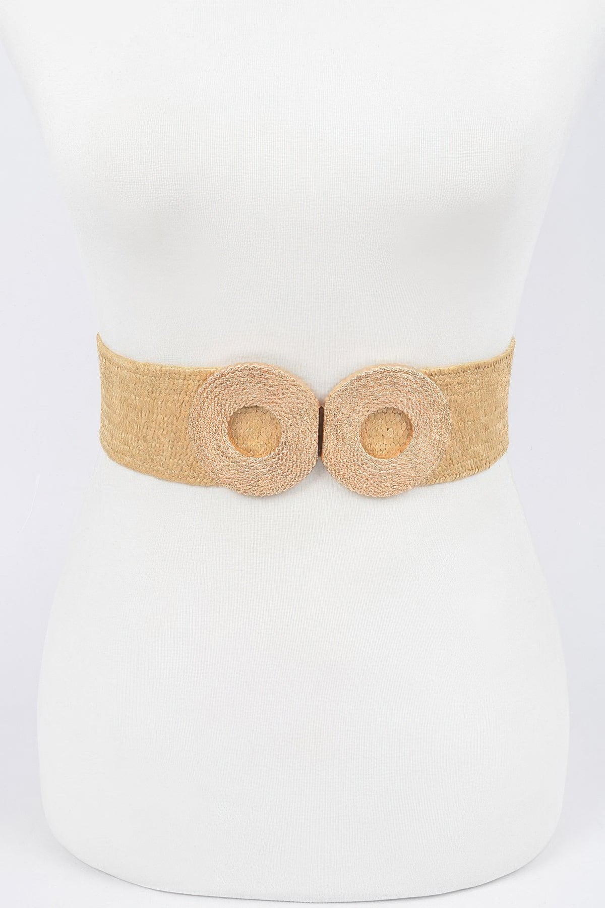 Bring texture and charm to your look with the Faux Straw Elastic Two Buckles Belt, a versatile accessory designed to enhance your silhouette with subtle sophistication. Crafted from a blend of faux straw and elastic, this belt offers both structure and stretch for a comfortable, flattering fit. The standout feature is the pair of elegant circular buckles, adding a stylish focal point to dresses, skirts, or high-waisted pants. With a width of 2.25" and a 29.5" length, it's the perfect piece to define your waist while elevating any outfit.