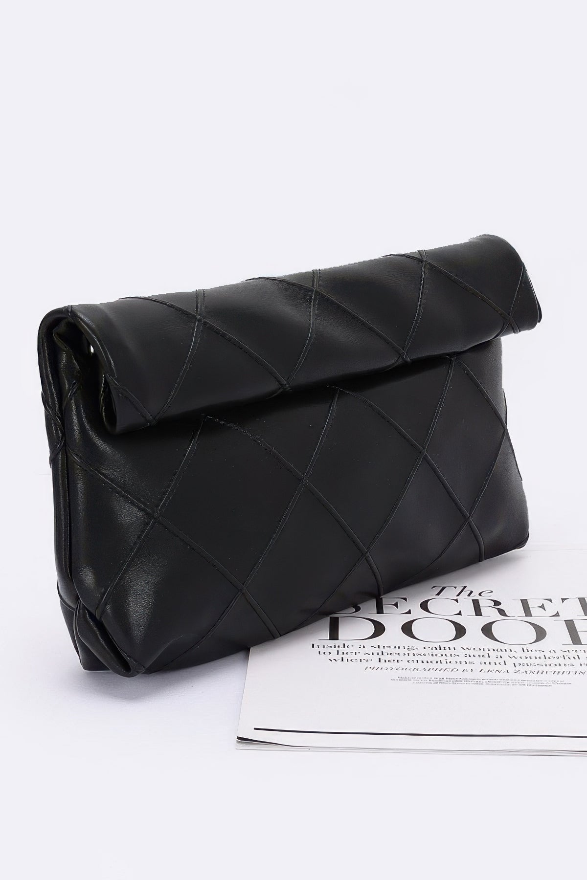 Add a touch of playful sophistication to your look with the Mystique Clutch, a chic accessory designed for the bold and stylish. Crafted from premium quilted faux leather with mixed metal accents, this pouch features a sleek chain strap and a whimsical secret door sign detail. Its structured silhouette provides ample space for your essentials, making it perfect for both casual and dressy occasions. Lightweight and eye-catching, the Mystique Clutch is the ultimate statement piece to showcase your unique personality.