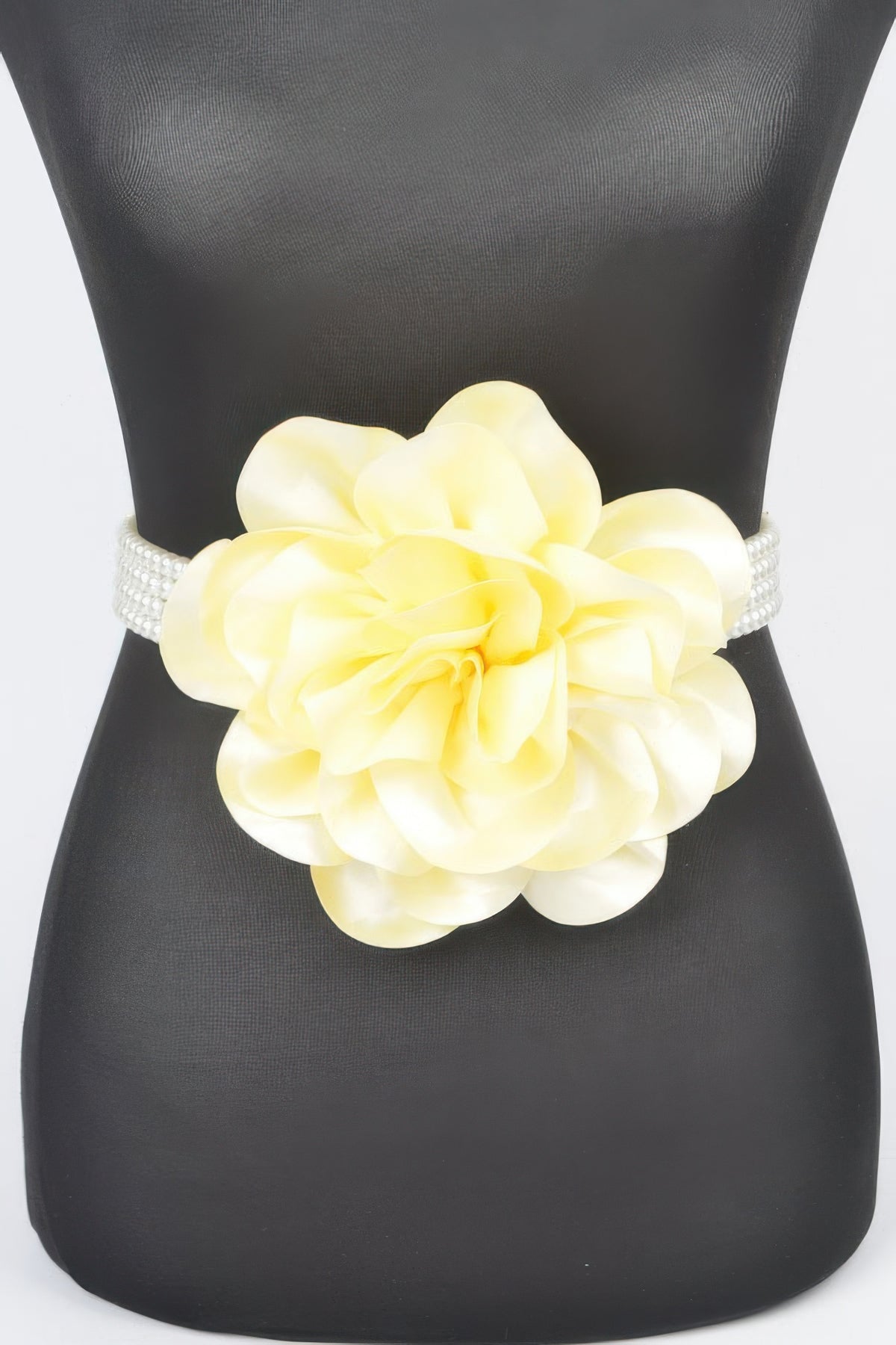 This belt effortlessly combines elegance with bold design. The oversized flower and pearl accents make it a standout accessory, while the elastic construction ensures it remains comfortable and versatile enough for everyday wear or special occasions.