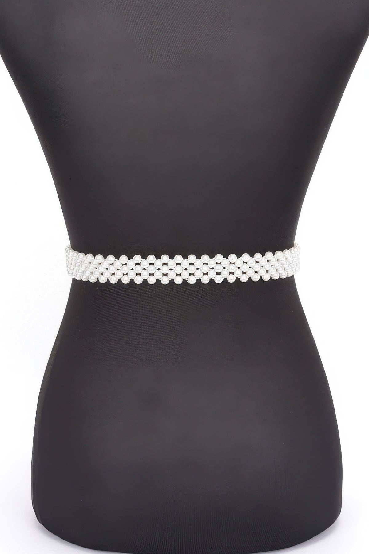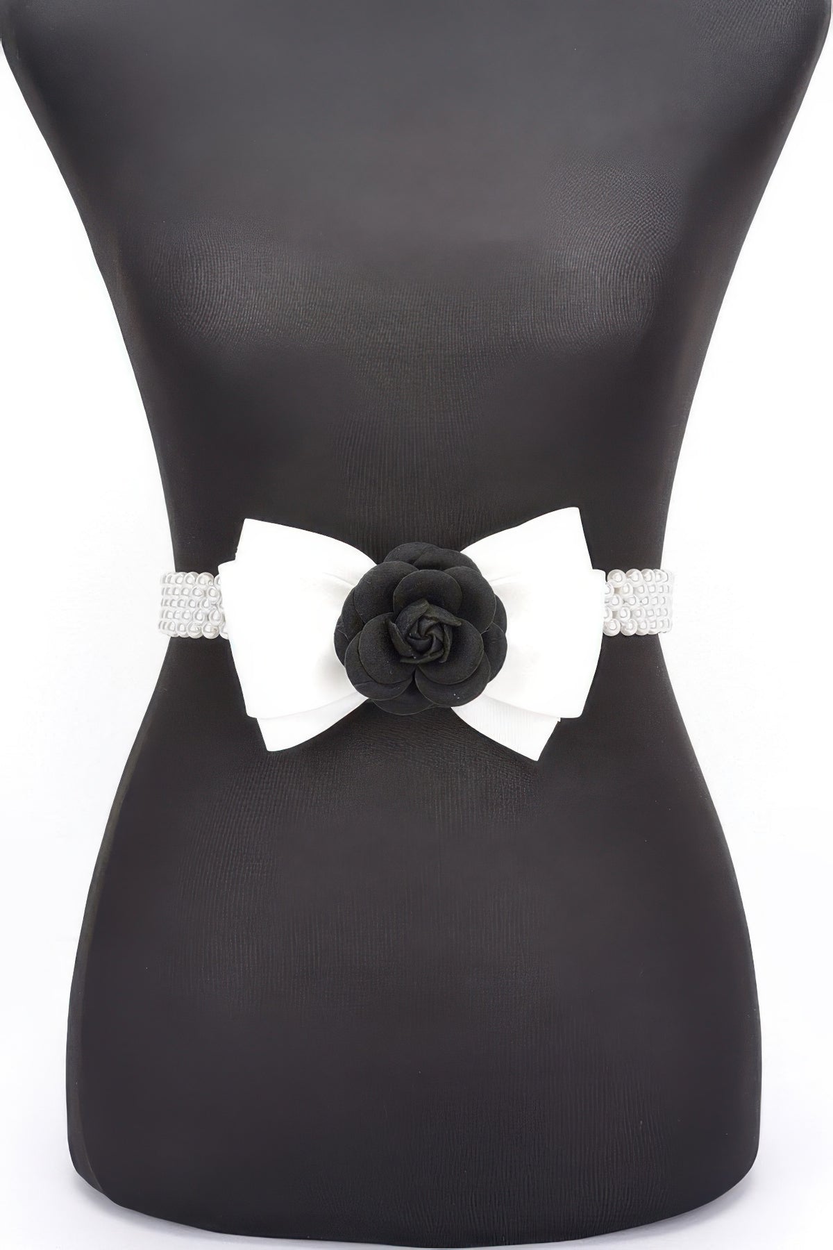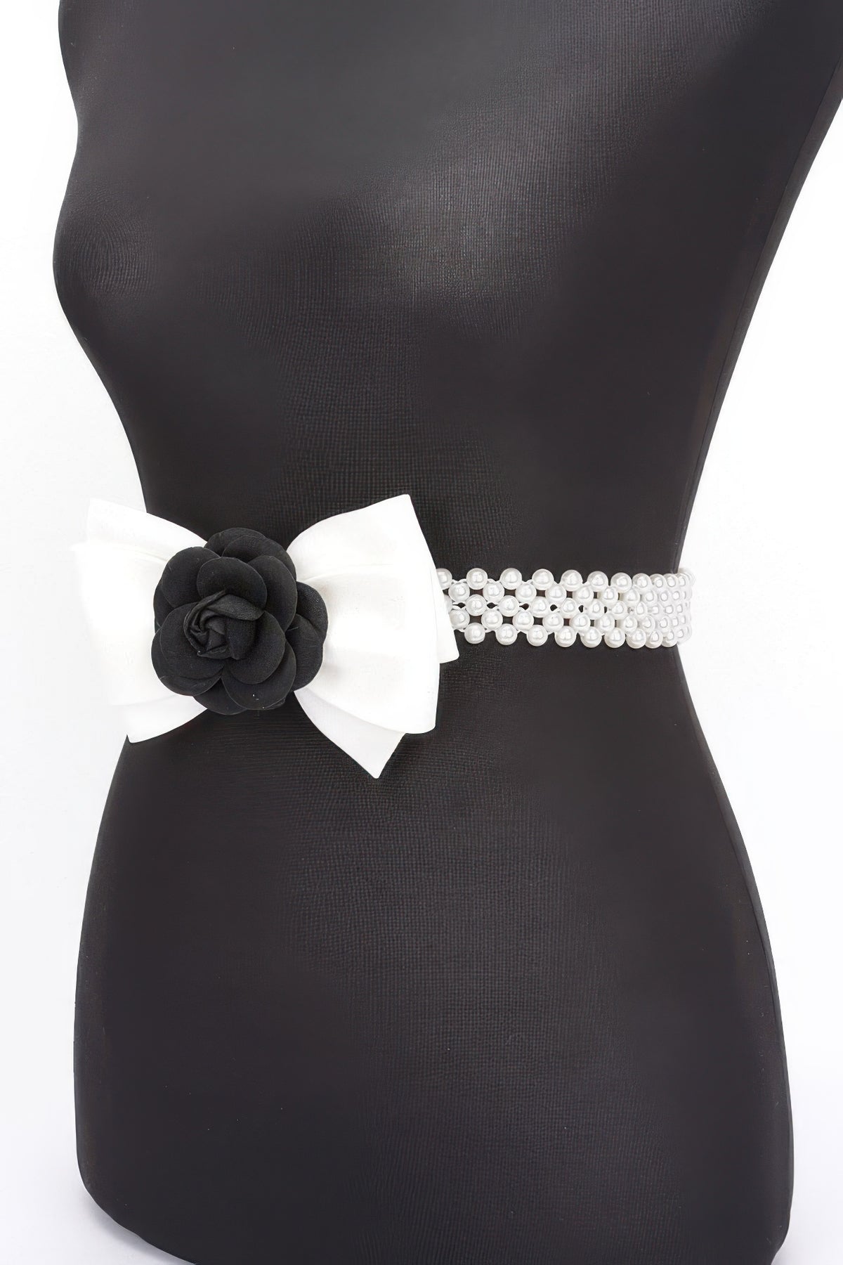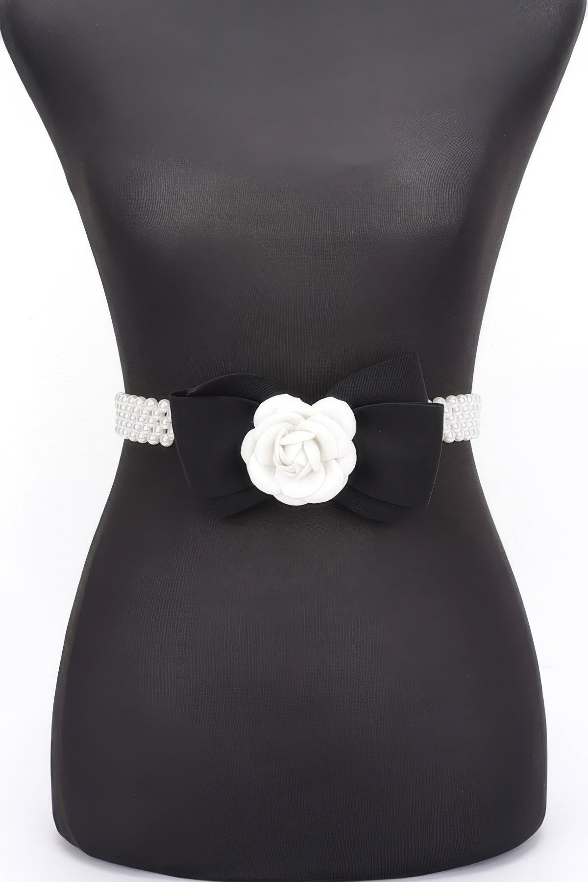 Add a graceful finishing touch to your look with the Flower Ribbon Faux Pearl Stretch Belt. Designed with a delicate floral ribbon centerpiece and accented by lustrous faux pearls, this belt effortlessly combines charm and sophistication. Crafted from durable PVC with a comfortable stretch fit, it measures approximately 1.25" in width and 28" in length for a flattering silhouette. Whether cinching the waist of a dress or adding detail to a blouse, this elegant accessory brings a refined sparkle to any ensemble. Perfect for weddings, special occasions, or elevating everyday style.