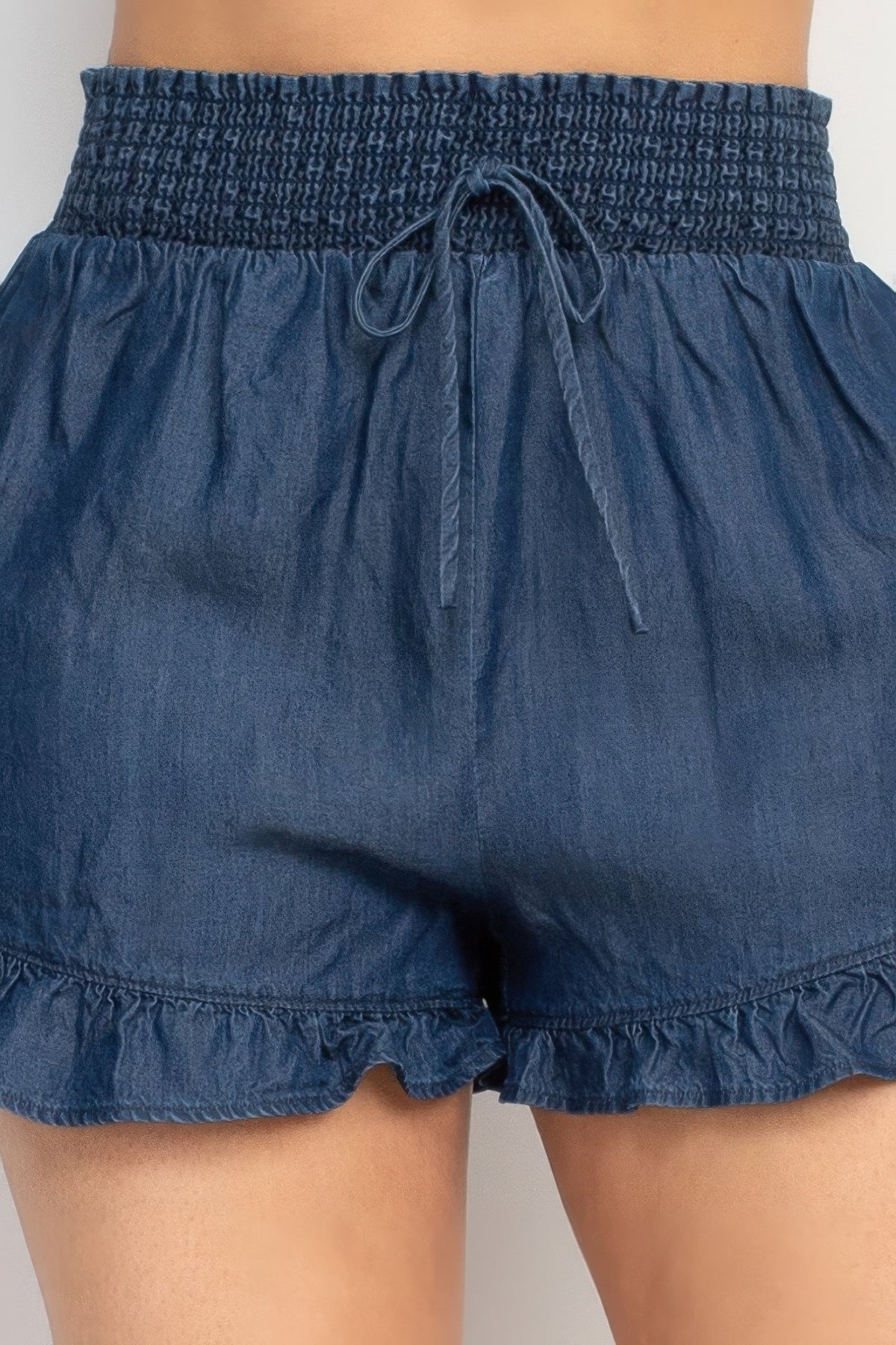 Discover the Stylish Smocked Waist Ruffled Denim Short