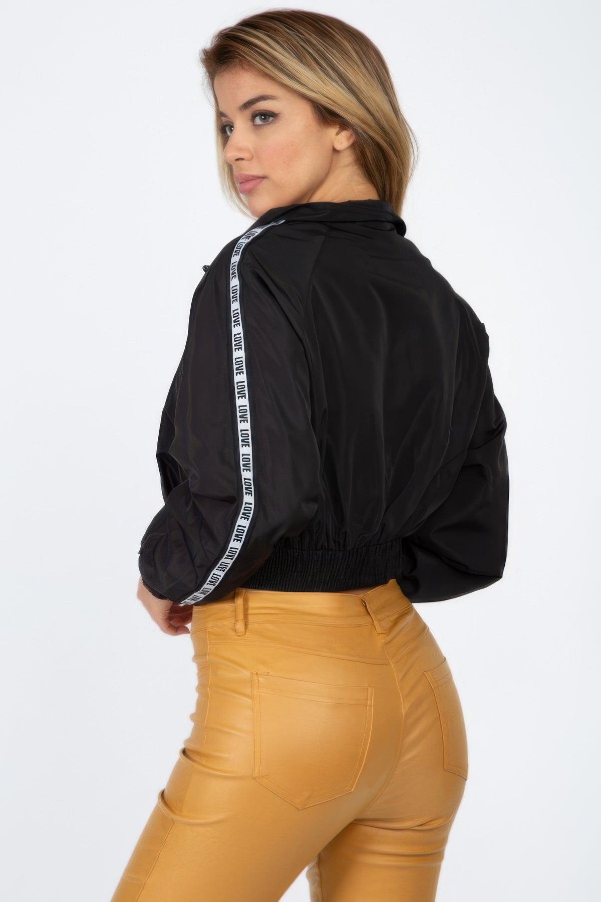 Add a sporty touch to your wardrobe with the Wind Breaker Love Taping Jacket, a perfect blend of casual style and modern flair. Crafted from durable 100% polyester, this jacket features bold printed letters on its long sleeves, making it a statement piece with an urban edge. The collared neckline and front zipper closure offer classic functionality, while the elastic hem provides a snug and comfortable fit. Designed at a waist length, this versatile jacket pairs effortlessly with jeans, joggers, or skirts, making it an ideal addition to your everyday outfits.