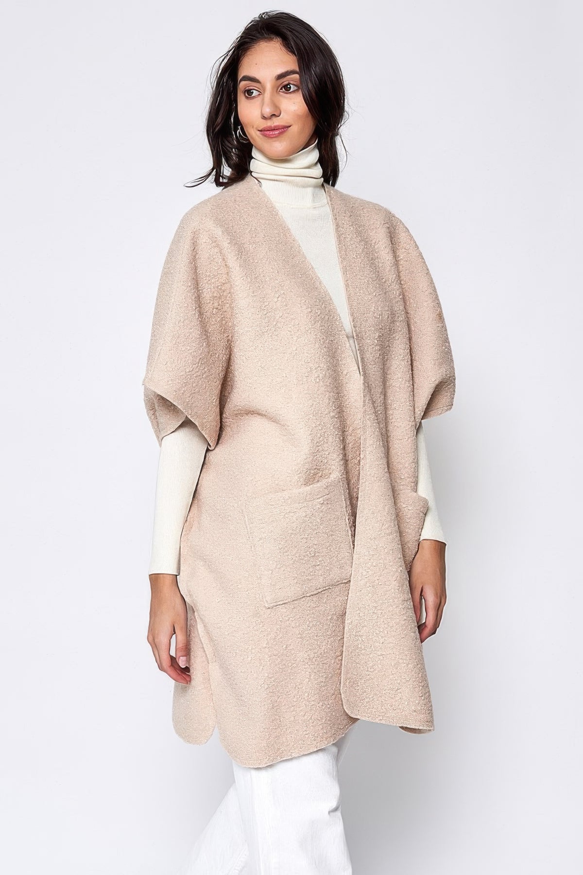 Design: Open front design with functional pockets on each side, adding a practical yet stylish element to the kimono. The subtle draping provides an elegant and effortless look.